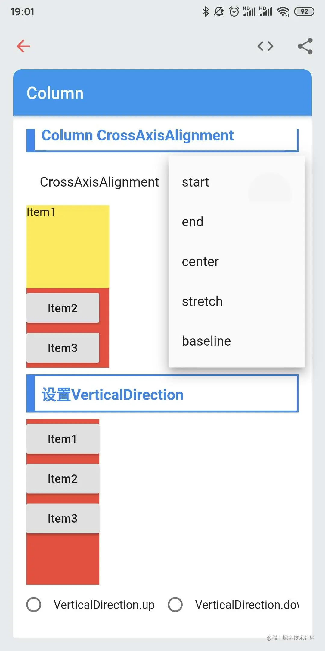 对于Demo演示来说,经常会出现很多选项的问题,例如Column的对齐方式,实际上就是一个枚举,每种枚举都有不同的实现效果,所以一个通过手动更高枚举的Widget,可以简化每个Demo中的类似的操作。