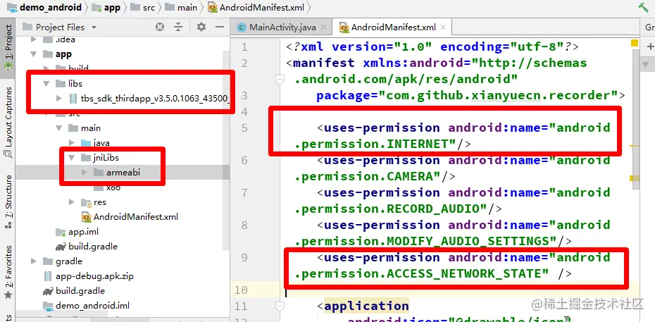 将改好名的所有文件,copy到项目的src/main/jniLibs/armeabi目录中(如果是arm64-v8a的一样copy),这样内核就集成好了(见文末图)。下面我们只需要在app运行时激活这个内核就ok了。