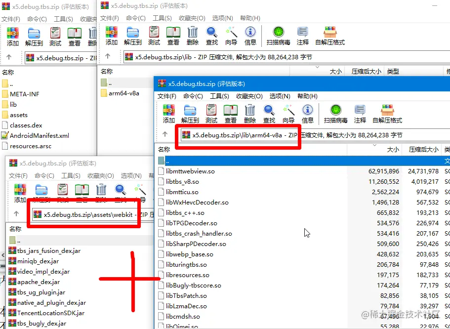将lib/arm*内的so文件复制出来,和assets/webkit内的文件放到一起,总共一起共40来个文件。