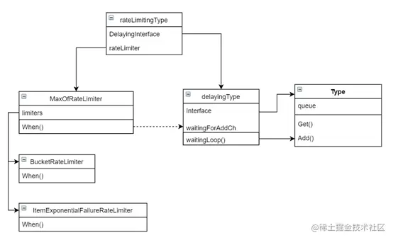 把这两个限速器放在一边,先看下NewMaxOfRateLimiter.When函数。最终落在NewMaxOfRateLimiter.When。
