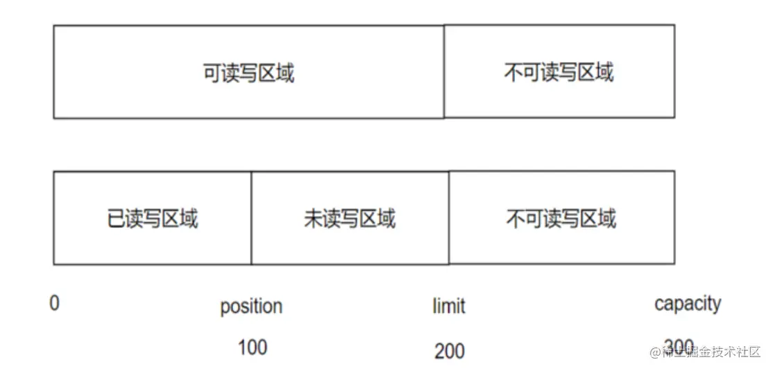 c)写完成需要调用flip方法刷新,limit=position,position=0 保障limit记录的是可读写区域的大小,position已读部分重置为空