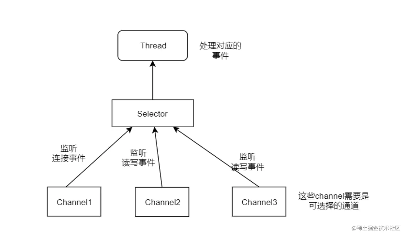 本质上,Selector是监听器,监听的是通道是否有我们关心的操作产生,操作对应的是事件(连接、接收、读/写),使用SelectionKey代表具体的事件,在确保通道是可选择的情况下,将通道注册进选择器中,此时Selector维护的是,通道和事件之间的关联关系。