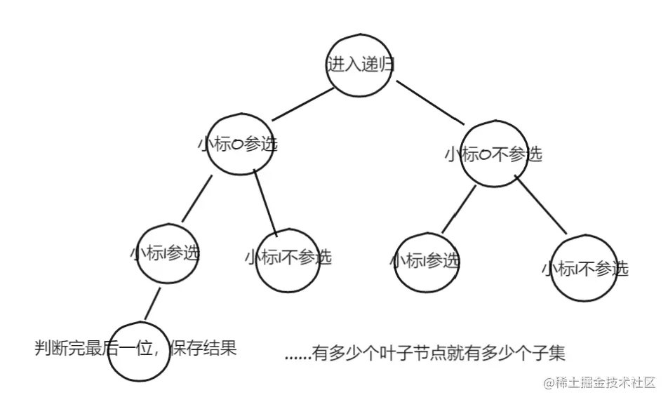 利用递归; 遇到1,分为进入子集和不进入子集两类情况,进入递归; 继续判断2; ......