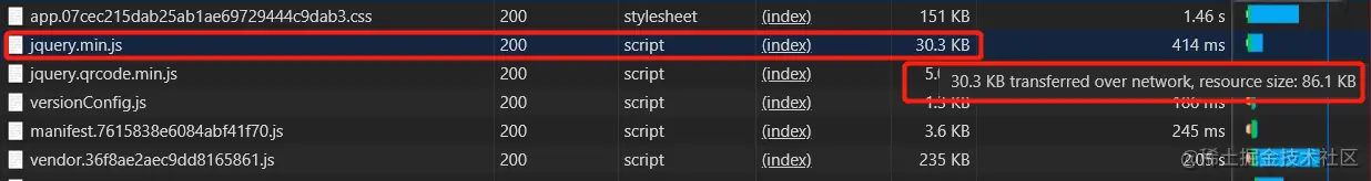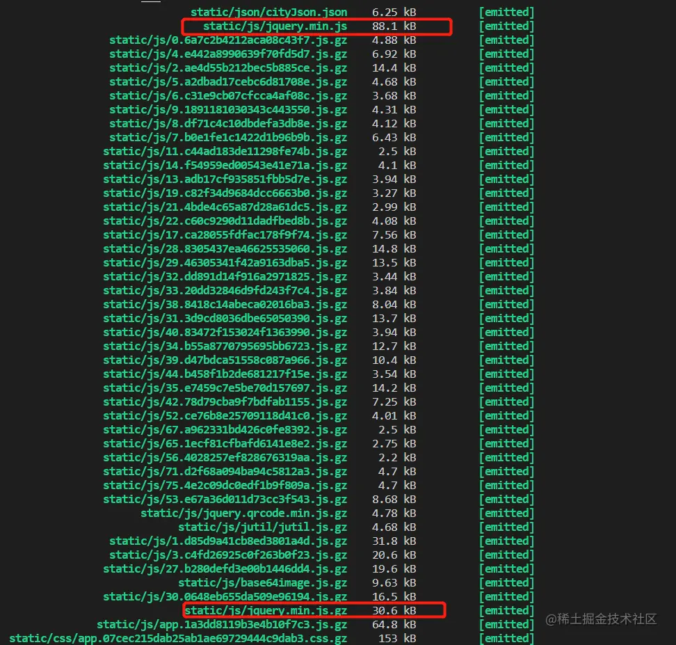 可以看到static/js/jquery.min.js的大小压缩到了一半以上。
