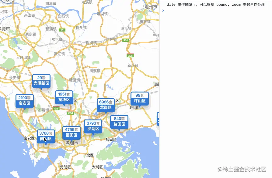 // idle 事件, 地图缩放或平移之后触发该事件