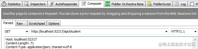 URL:**http://localhost:52317/api/student**;HTTP方法:**GET**。如下图所示: