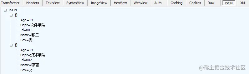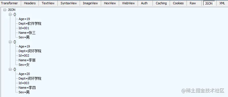 运行程序,输入URL:http://localhost:52317/api/student/GetByDept/资环学院;HTTP方法:GET。运行结果如下:
