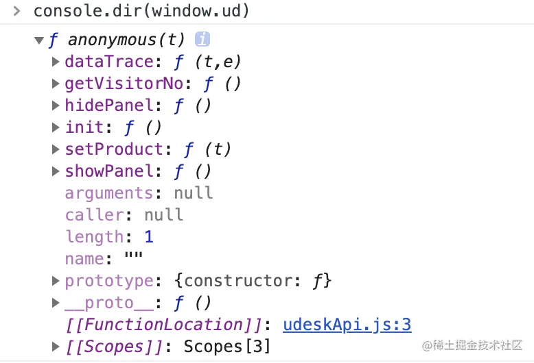 初始化完成后会把udesk的挂载在window上,打印出来是这样子的: