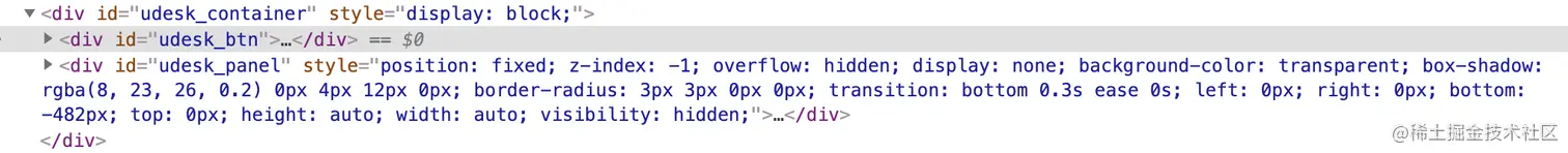 检查dom节点,会发现 udesk 创建了 id 为 udesk_container 的 div ,结构如下。
