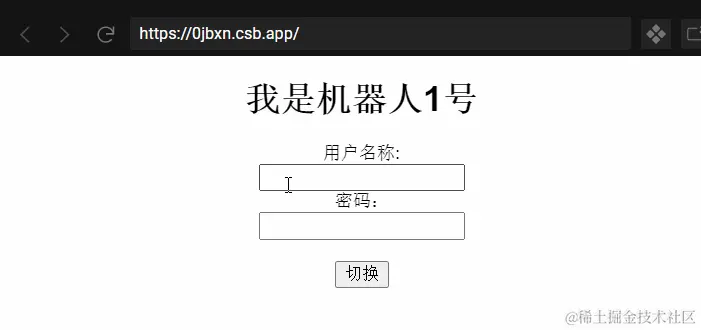 实例2:上面的例子我们完成了动态组件的初步使用,我们还可以添加点击事件switchComponent来修改currentComponent的值,从而真正达到两个组件之间的切换状态