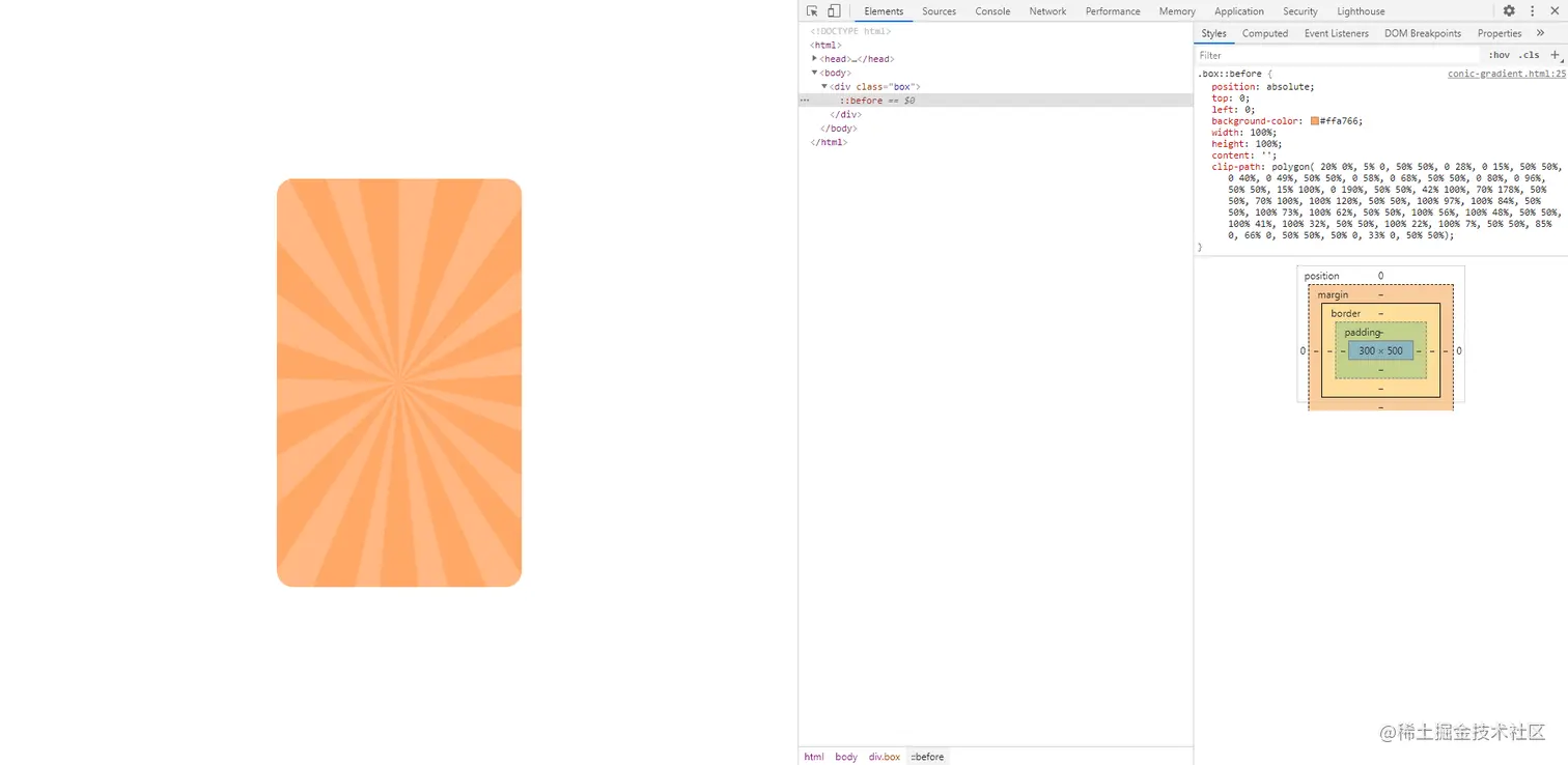 background属性的repeating-conic-gradient这个值,也可以实现上面这个放射性的效果。