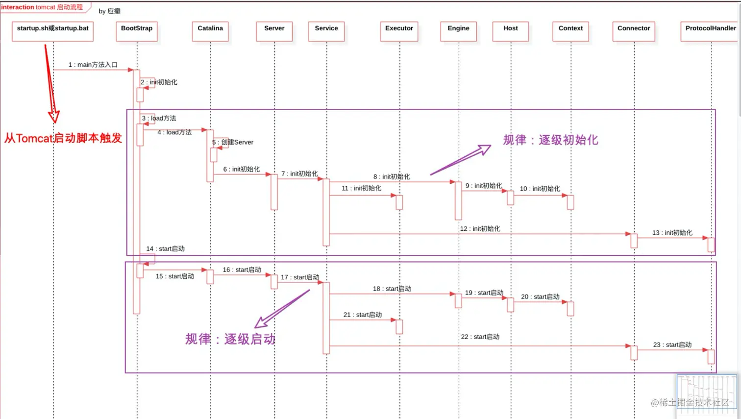 从时序图中可以看出,Tomcat是一种类似套娃式的逐级初始化和启动方式。
