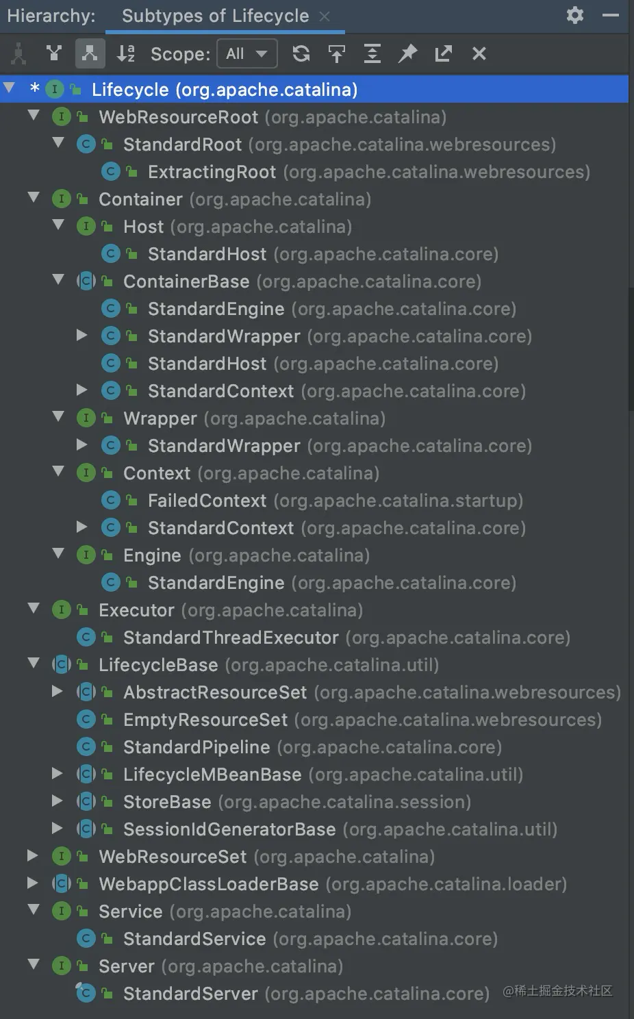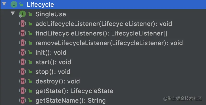 Tomcat的各容器组件都会涉及到创建、销毁等,因此Tomcat设计了生命周期接口Lifecycle统一精心规范管理,各容器组件实现该接口。