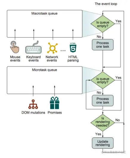 每轮次的event loop中,每次执行一个task,并执行完microtask队列中的所有microtask之后,就会进行UI的渲染。但是作者似乎对于这个结论也不是很肯定。而我第一反应就是Vue的$nextTick既然用到了MutationObserver(MO的回调放进的是microtask的任务队列中的),那么是不是也是出于这个考虑呢?于是我想研究了一遍Vue的$nextTick,就可以了解是不是出于这个目的,也同时看能不能佐证UI Render真的是在microtask队列清空后执行的。