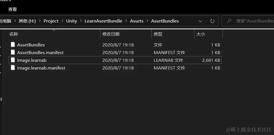 完成打包后,会生成四个文件(不包括.meta文件),如图:
