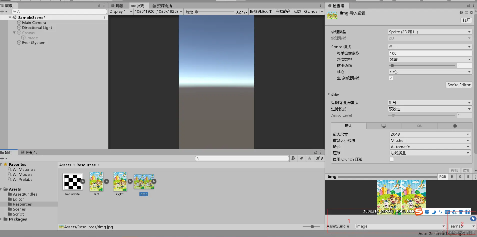 图中1为分组名(即打包出来的ab包的名字),2为打包出来的AB包的后缀