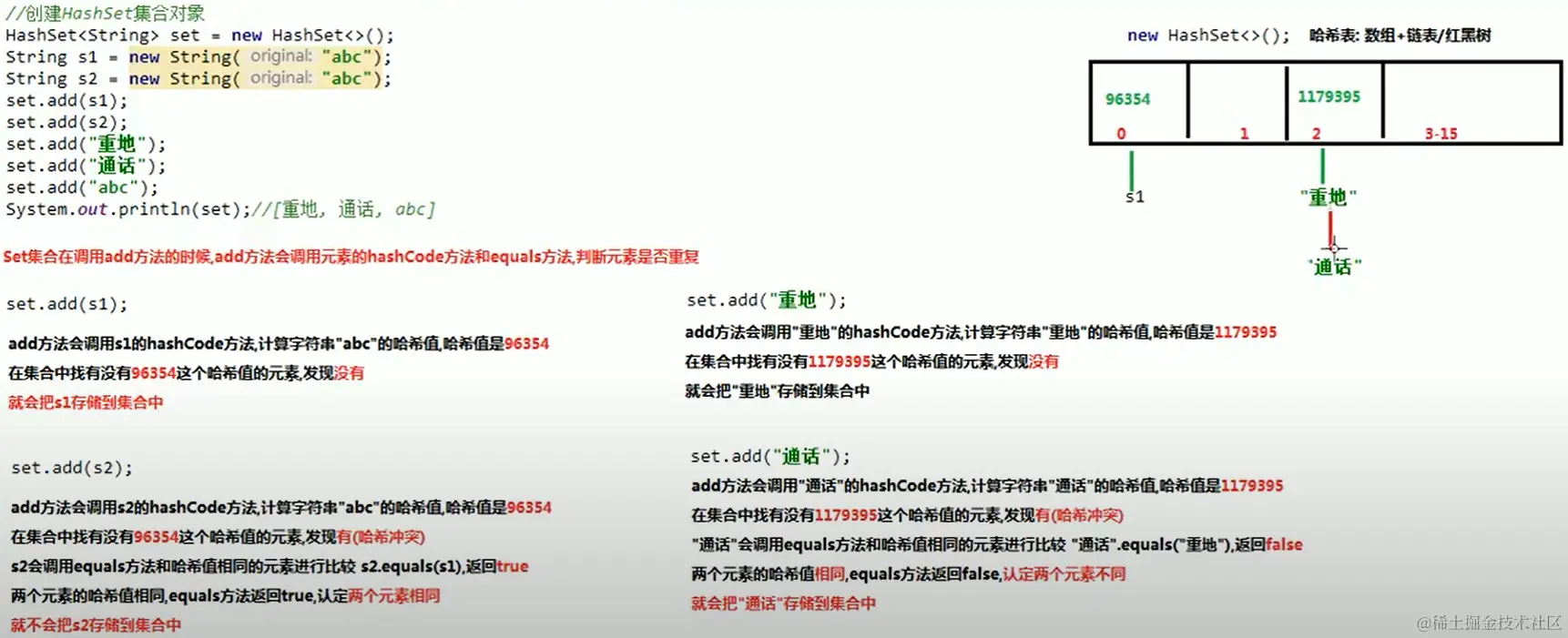 前提:存储的元素必须重写hashCode和equals方法,所以用HashSet存储自定义元素时,自定义类(如Person)要重写hashCode和equals方法。