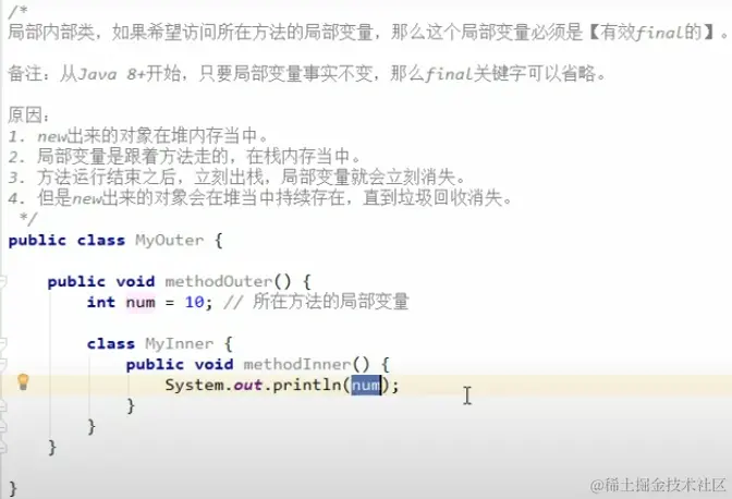 局部内部类的final问题