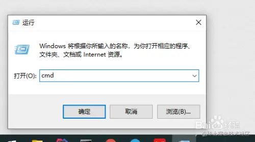 打开cmd。win徽标键+R,输入cmd。