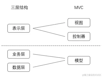 MVC软件设计模式也是三层 == 模型 + 视图 + 控制器。