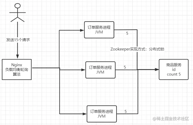 **分布式锁:**在分布式系统环境下,一个方法在同一时间只能被一个机器的一个线程执行。