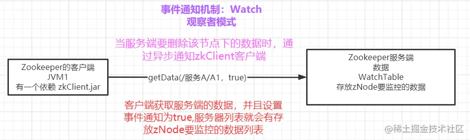 我们可以把Watch理解成是注册在特定Znode的触发器,当这个Znode发生改变,也就是调用了create、delete、setData写操作方法时,将会触发Znode上注册的对应事件,请求Watch的客户端会接收到异步通知。