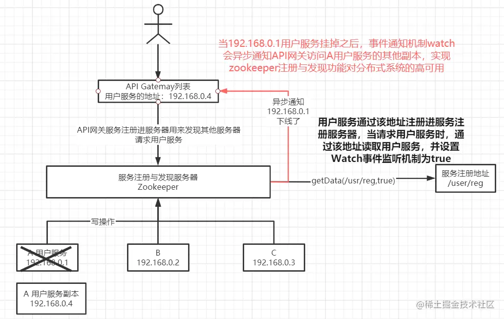 Zookeeper事件通知机制实现服务与注册功能,实现了分布式系统的高可用问题