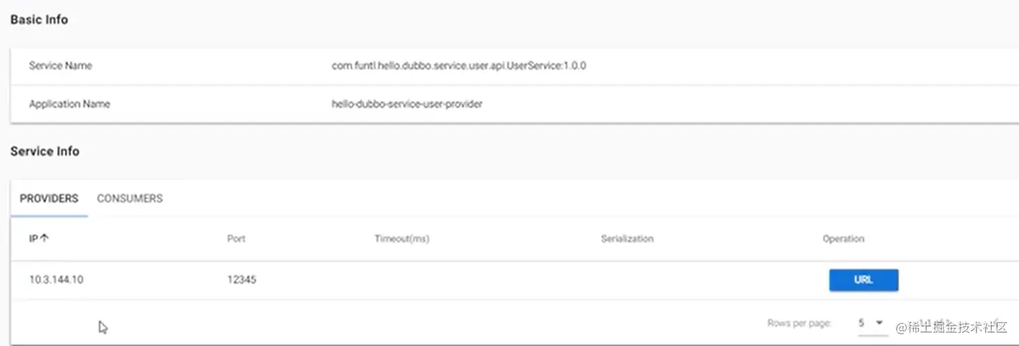 spring: application: name: hello-dubbo-service-user-consume #配置版本 user: service: verison: 1.0.0 #配置需要扫描dubbo 的包 dubbo: scan: basePackages: com.baoji.hello.dubbo.service.user.consume.service application: id: hello-dubbo-service-user-provider # 配置dubbo的id和名字 name: hello-dubbo-service-user-provider qos-enable: true # 设置状态检查 protocol: id: dubbo name: dubbo # 设置采用dubbo协议做远程通信,采用12345端口访问数据,状态为服务端 port: 12345 registry: id: zookeeper # 设置zookeeper注册中心的集群地址,多个集群通过backup设置 address: zookeeper://192.168.0.103:2181?backup=192.168.0.103:2182,192.168.0.103:2183- 3.4、浏览器输入