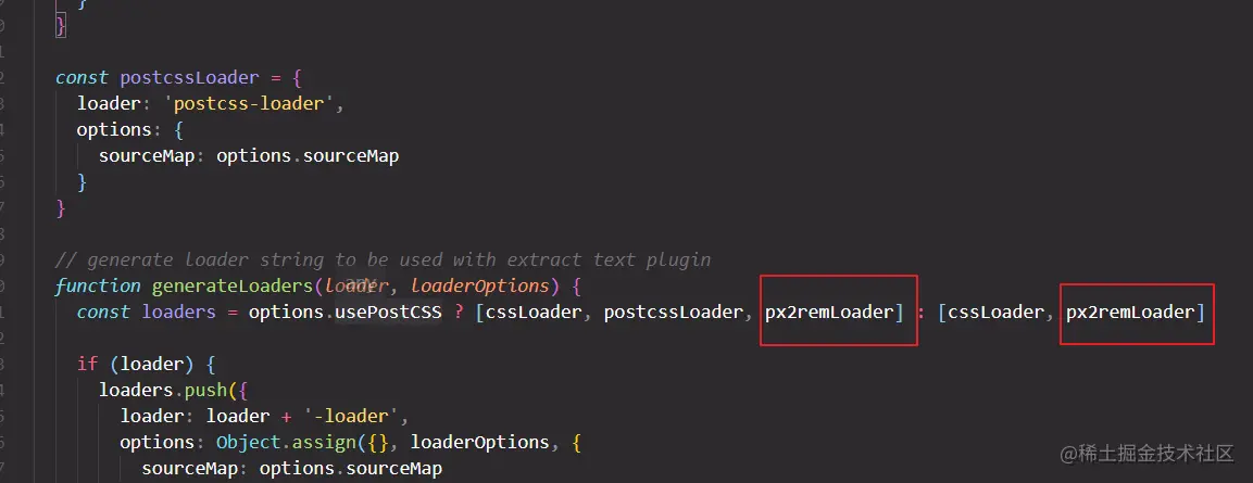 const loaders = options.usePostCSS ? [cssLoader, postcssLoader, px2remLoader] : [cssLoader, px2remLoader]