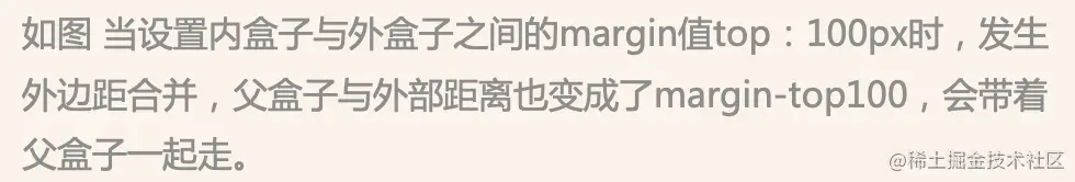 当两个嵌套关系的块元素,子盒子想设置上下margin的时候,父盒子的margin可能和子盒子的margin发生合并,合并后取中间比较大的margin