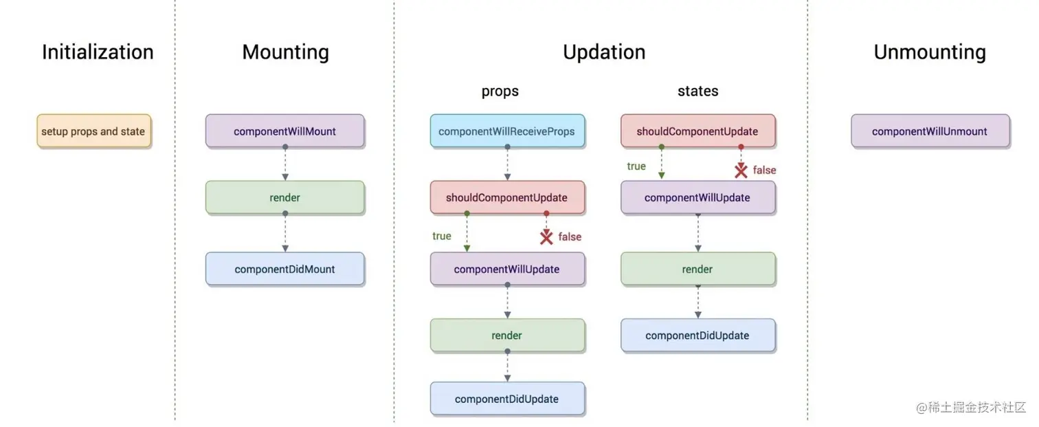 简单来说,react16.0之前的生命周期可以分为四个阶段: