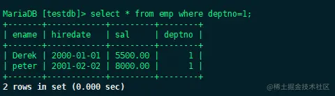 select * from emp where deptno=1;