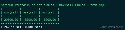 select sum(sal),max(sal),min(sal) from emp;
