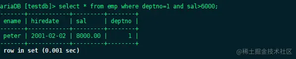 select * from emp where deptno=1 and sal>6000;