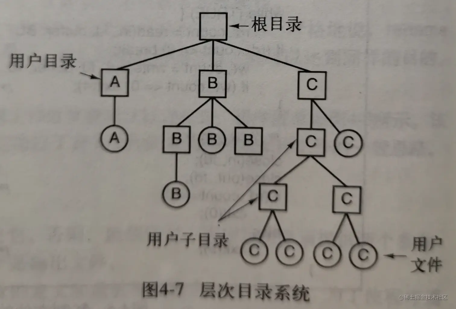 根目录:有些操作系统只有一个目录,包含了所有的文件,此目录称为根目录 单层目录系统设计简单,能快速定位文件,常用于简单的嵌入式装置中(电话、相机等)