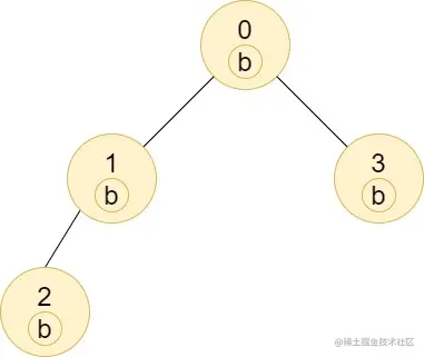 节点 0 的子树中包含节点 0、1、2 和 3,标签都是 'b',因此答案为 4 。