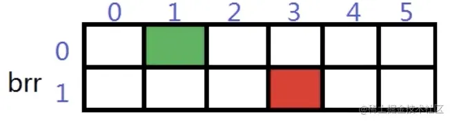 - 由多个一维数组垛在一起构成。每个一维数组代表一行。