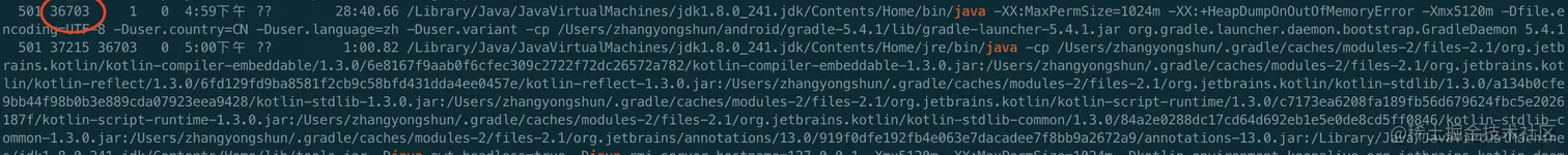 但是后来想到,这个堆内存使用信息是打包平台服务的内存使用情况,并不能体现出打包脚本的内存使用(因为Android打包脚本 也是java服务)。通过“ps -ef|grep java” 查看一下: