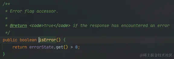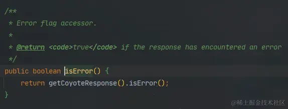 isError()属性为真才会执行下边的代码,啥时候为真呢,就是调用了sendError()方法 依次进去看看![]()