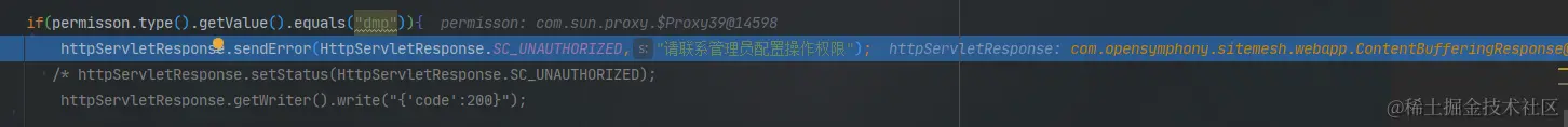 这是一个权限拦截器中的一个代码,如果没有权限话的进行提示并终止调用,项目中用到了