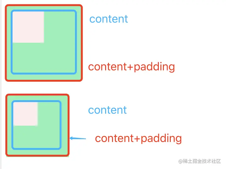 - 使用绝对定位时,子元素的宽高不再是其基准的content,而是padding-box(content+padding)
