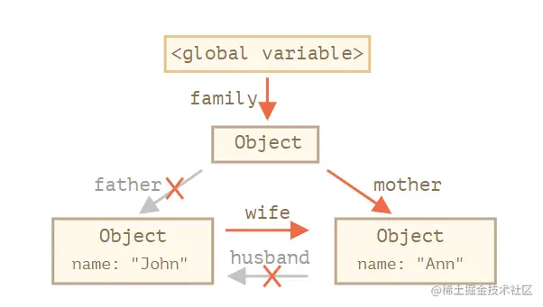 user = null;时,2者之间的联系就断了,无法访问它,也没有对其的引用。垃圾收集器将垃圾数据并释放内存。