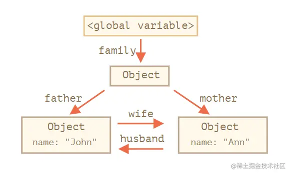 像C语言这样的底层语言一般都有底层的内存管理接口,比如 malloc()和free()。相反,JavaScript是在创建变量(对象,字符串等)时自动进行了分配内存,并且在不使用它们时“自动”释放。 释放的过程称为垃圾回收。