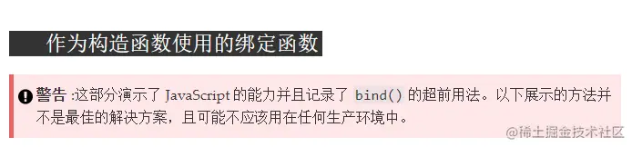 - 除此之外,bind还可以绑定构造函数,但众所周知,new操作符会改变this的指向,虽然MDN不推荐使用,但姑且考虑一下:)
