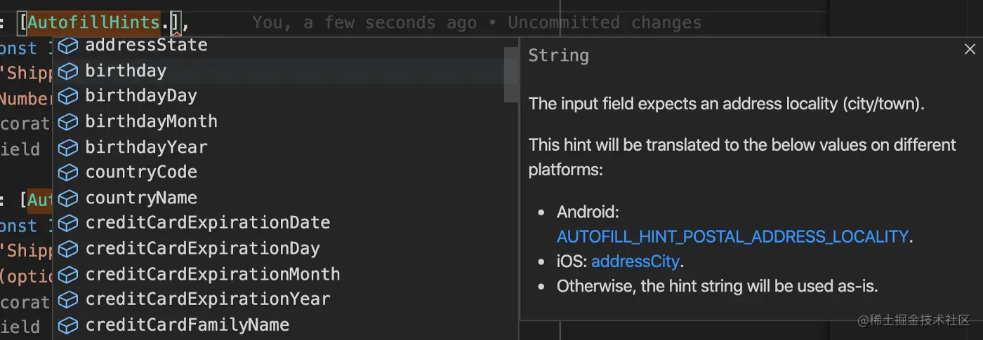 自动填写提示(AutofillHints),集合了常用的自动填写提示,有助于避免错别字,保证跨平台的兼容性。
