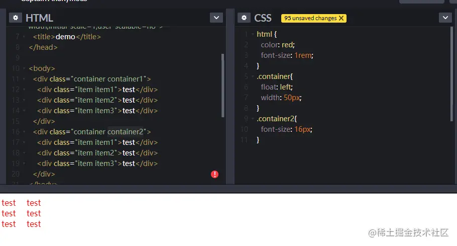 接着我们给html设置font-size为1rem,看效果: