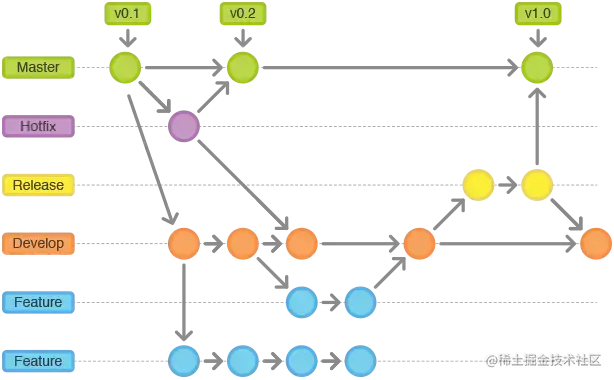 当需要发布一个新 Release 的时候,基于 Develop 分支创建一个 Release 分支,完成 Release 后,合并到 Master 和 Develop 分支