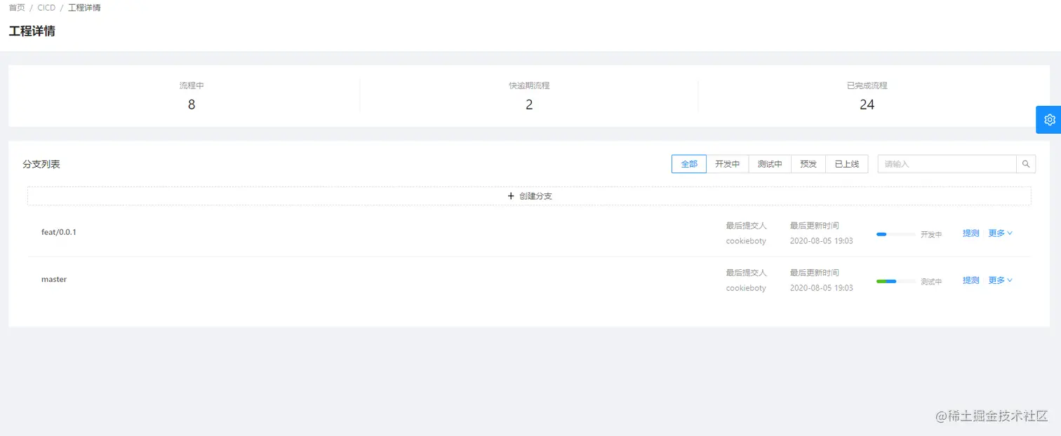 上述的 Git Flow 流程使用可以规范约束开发质量跟流程,我们稍微修改一下部分流程,融入到项目中进行使用。