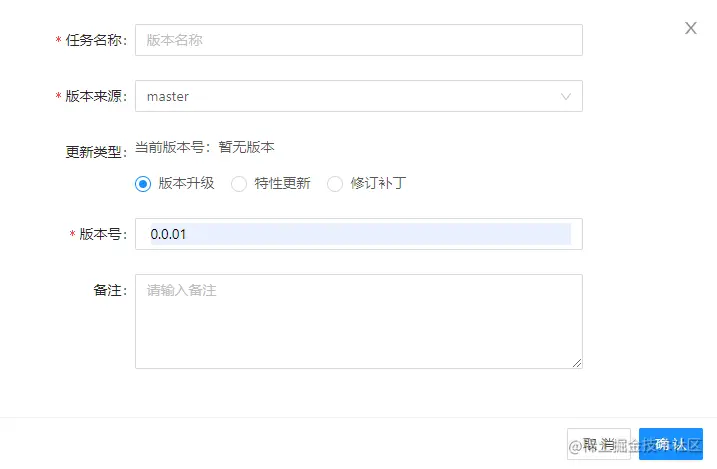如图每个工程都共享一个 version 版本号,分支创建分为版本升级、特性更新、修订补丁三种模式,强制项目所有分支创建的命名规则都会升级,不会出现重复跟降级。