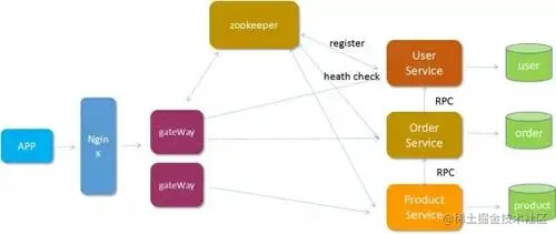 下图中的每个组件都是需要部署在单独的服务器上,Gateway 用来接受前端请求、聚合服务,并批量调用后台原子服务。每个 Service 层和单独的 DB 交互。